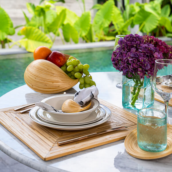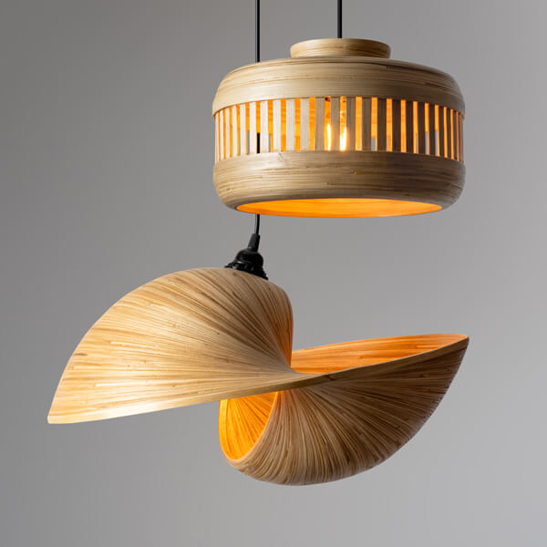 variety of designs in teak wood, bronze, bamboo, paper mache